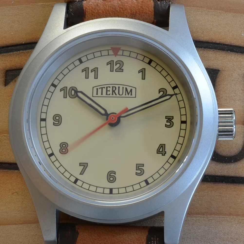 Iterum takes watch movements from the 1940's-1960's and give them new lives in a modern stainless steel case and a dial reflecting the classic style of military watches. New watches salvaged from vintage movements.